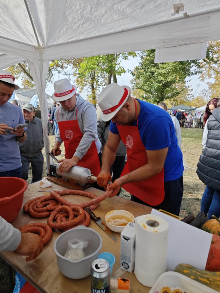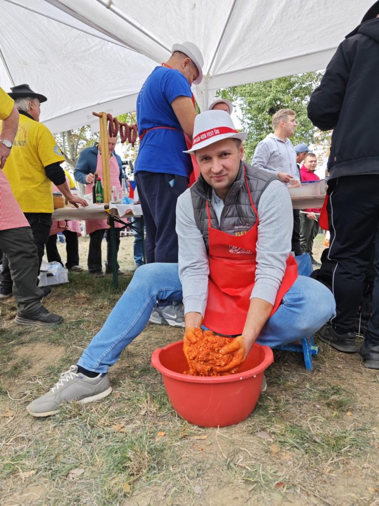 Samozrejme, že tu nechýbali ani šafárikovci, ktorí sa zúčastnili súťaže v príprave čerstvých klobás.