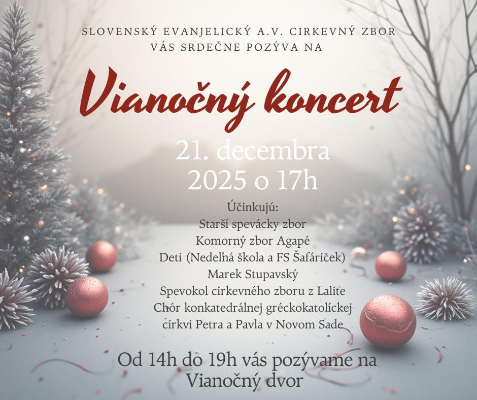 srdačno vas pozivamo na Božićni koncert dana 21.12.2025.godine u 17h koji će se održati u novosadskoj crkvi.
